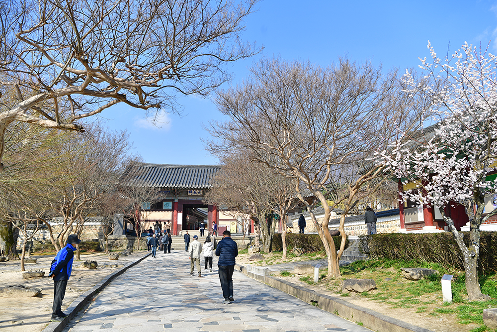 일주문을 지나면 '천왕문'이 나타납니다. 사찰 중심부로 들어서기 위한 필수 관문입니다. 천왕문 근처에 매화꽃이 제법 화사하게 피었습니다. 고풍스러운 사찰과 어우러진 모습을 잠시 담아 봅니다.ㅎ