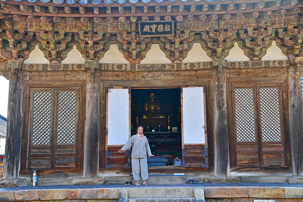 극락보전 건너편에는 중생의 병을 고쳐주는 약사여래불을 모신 '약사전(藥師殿)'이 자리합니다. 전각 앞에서 간절히 절을 올리는 한 어르신의 모습이 인상적입니다. 그 깊은 정성이 닿아 부디 오래도록 무병장수하시기를 저도 곁에서 마음 다해 빌어봅니다