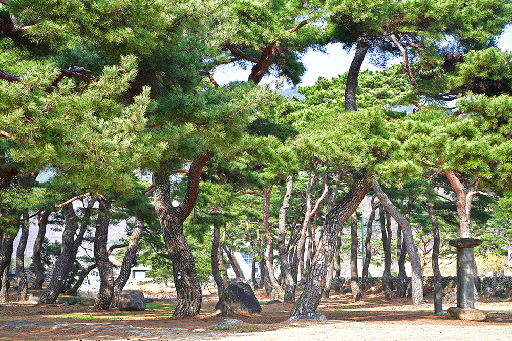 도대체 어떤 풍경이기에 '내륙의 제주'라 불릴까? 호기심 가득 도착한 한밤마을 입구에는 근사한 솔밭이 펼쳐집니다. 노송 사이로 우직하게 서 있는 비석들이 서있습니다. 임진왜란 당시 영천성 수복에 큰 공을 세운 홍천뢰 장군과 그의 조카 홍경송 선생을 기리는 추모비입니다. 푸른 소나무의 기개와 역사의 향기가 어우러져 시작부터 예사롭지 않은 분위기입니다.