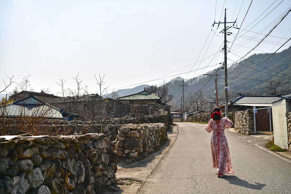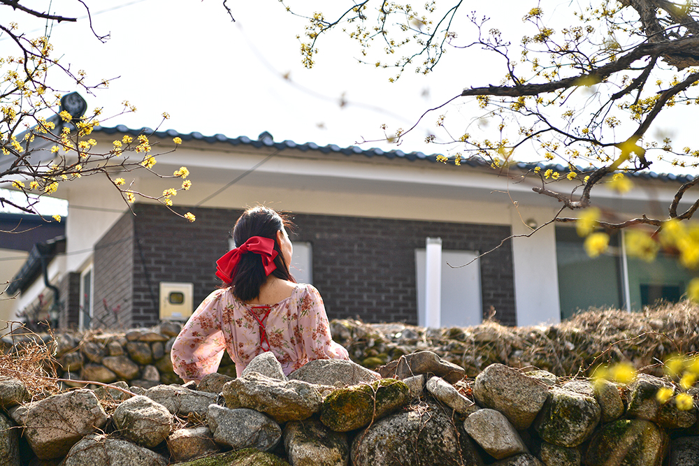 여태껏 경험해 보지 못한 독특한 분위기의 돌담길입니다. 투박한 돌담이 끝없이 이어지는 이채로운 정취 속에서 전속 모델을 앞세워 봅니다. 천 년의 시간을 오롯이 간직한 한밤마을의 돌담길에서 우리만의 소중한 봄날을 기록해 봅니다.ㅎ