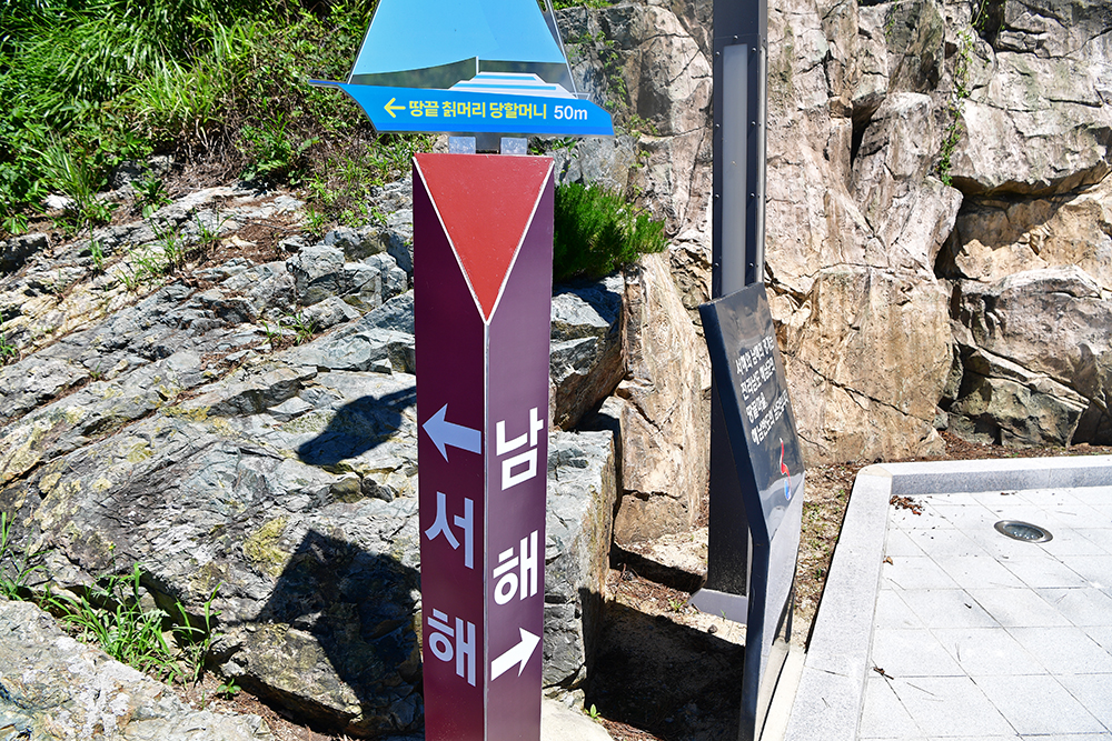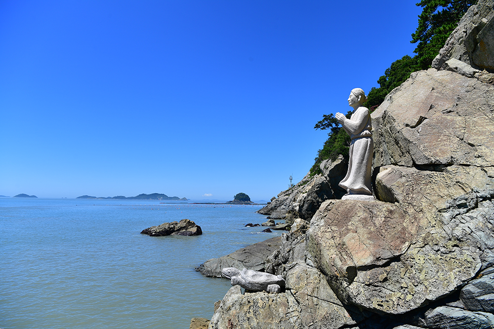 땅끝탑 옆 해안 절벽에 할머니 상이 자리하고 있습니다. 바로 땅끝 칡머리당할머니 상입니다. 땅끝의 옛 이름이 '칡머리'였는데, 이곳을 오가는 뱃사람들이 만선과 안전을 기원하며 영험한 당할머니께 빌었다고 전해집니다.ㅎ 저도 자연스레 발걸음을 멈추고 당할머니께 우리 가족의 건강과 행복을 기원했습니다. ㅎ