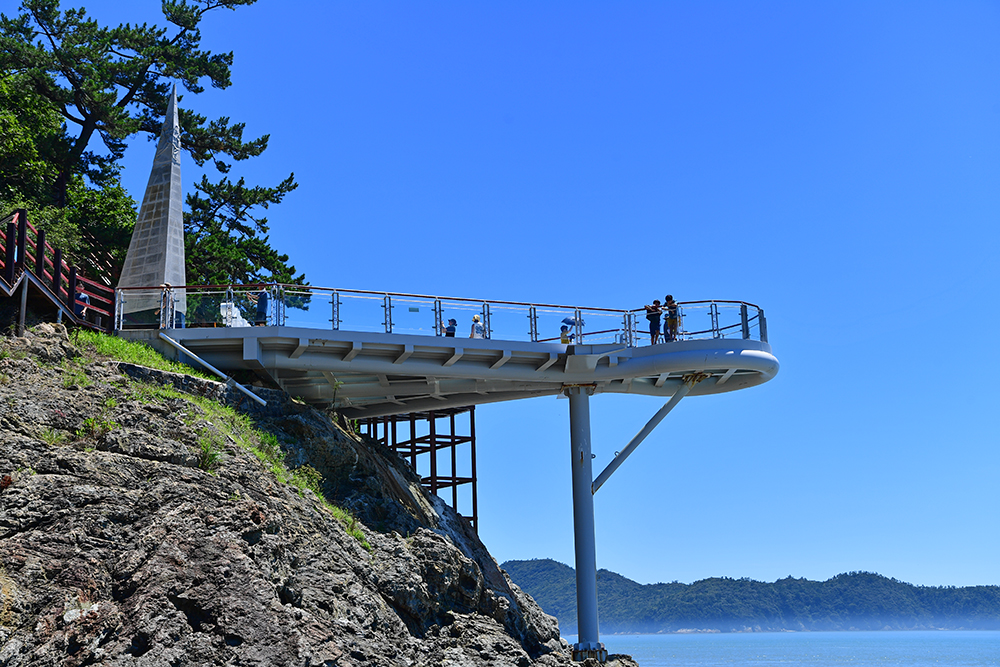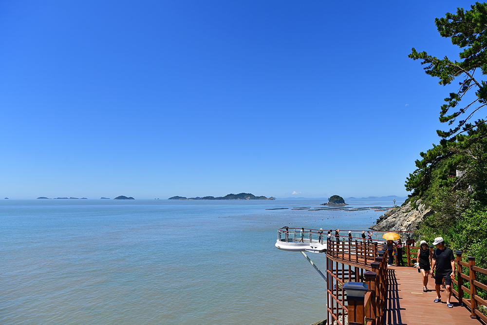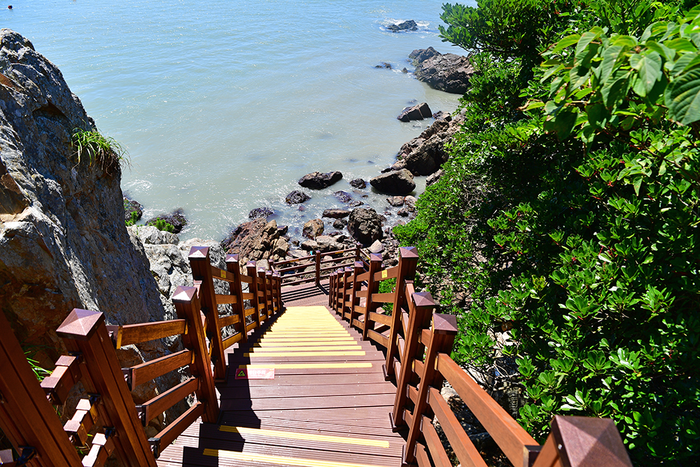 스카이워크를 나서면 곧바로 나무 데크 길이 이어집니다. 발걸음을 옮기기 전, 다시 한번 뒤돌아 전경을 바라 봅니다. 이 자리에서는 스카이워크가 바다 위로 얼마나 높게 뻗어 있는지 실감할 수 있습니다. ㅎ